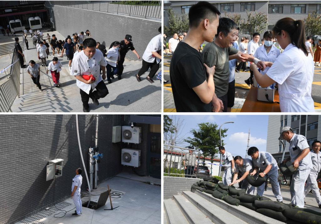 发生汛情后,学生和餐厅工作人员等在统一指挥下快速有序撤离至集合点。抢险组工作人员们服从指挥、分工协作,清理积水、搬运沙袋、快速堆码、筑牢堤坝,同时进行电力维修、恢复供电。