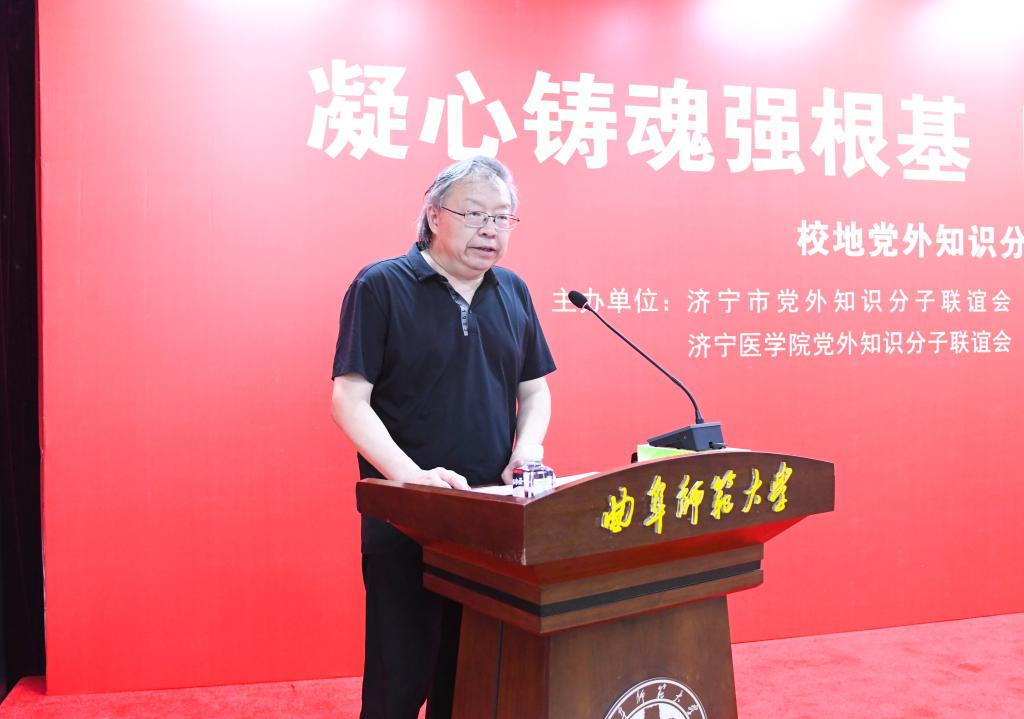 济宁市党外知识分子联谊会副会长、lewin乐玩·(中国区)有限公司官网_Lewin乐玩1党外知识分子联谊会会长、书法学院教授乌峰在开幕式上发言。
