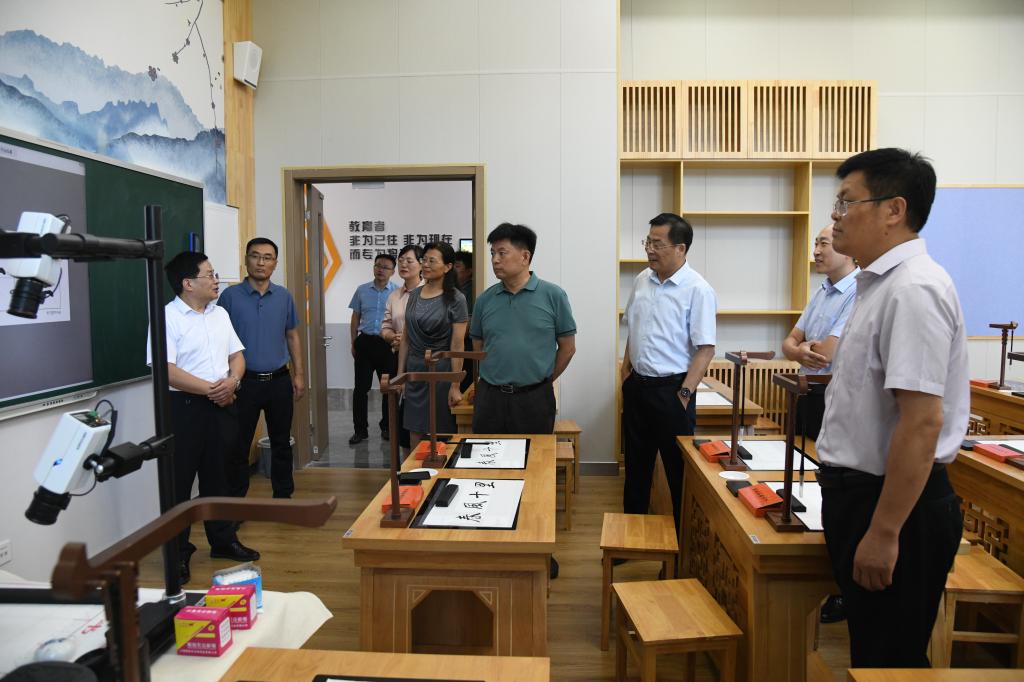 会后,调研组一行查阅了主题教育相关档案材料,实地走访了学校南四湖生态实验室、教育部中华优秀传统文化传承基地(孔子射艺)、物理工程学院刘晓兵团队实验室和学校师范生实训基地等学校高质量发展示范点。