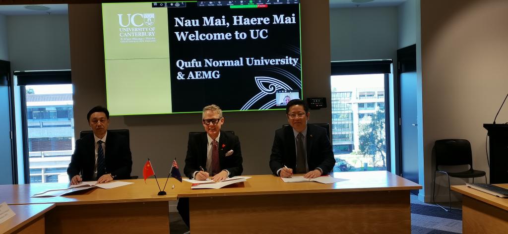 在新西兰,代表团访问了坎特伯雷大学并签署了两校合作备忘录,就学生双学位校际交流项目、师资发展、共建科研平台等事项达成一致意见。随后与坎特伯雷大学工学部、曲阜师大数学科学学院举行三方视频会议,就联合申报中外合作办学项目的细节进行了进一步磋商。