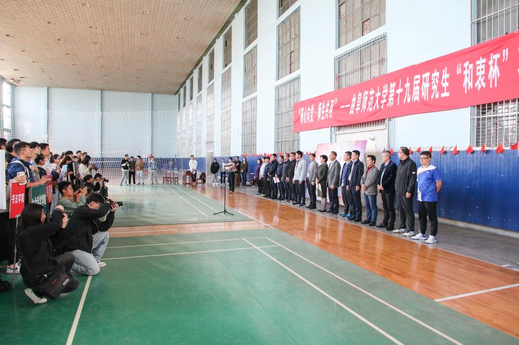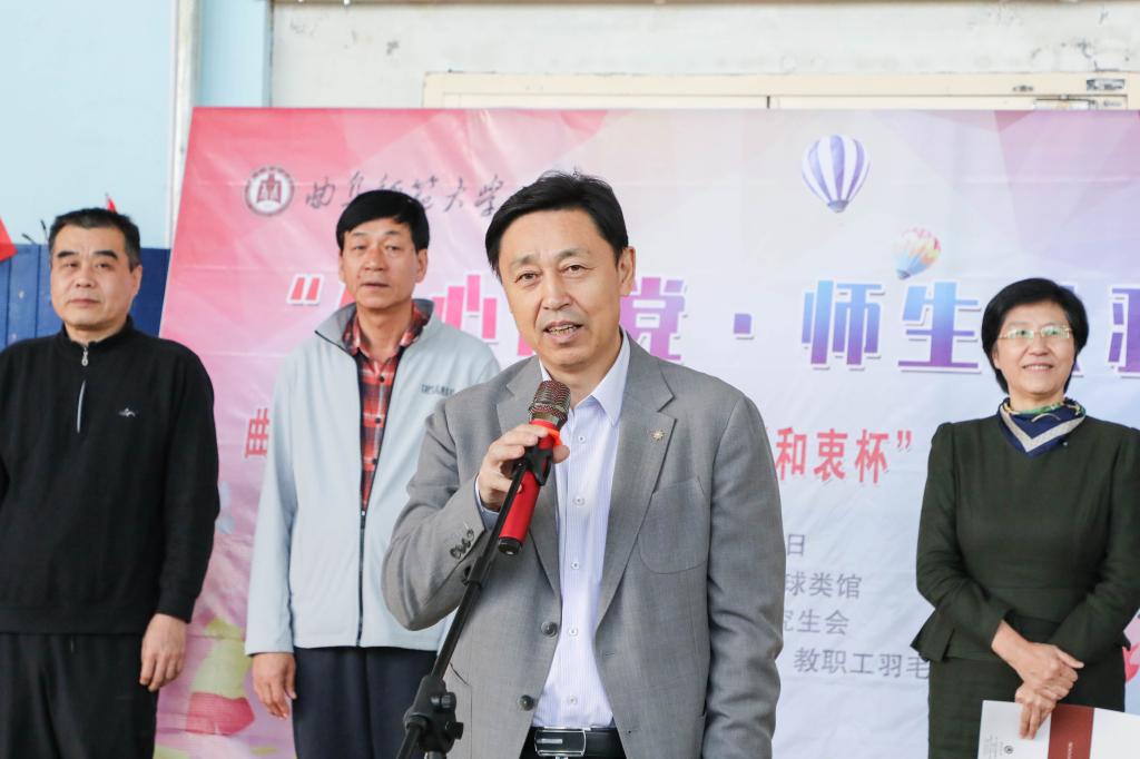 曲阜师大研究生处讯 为促进师生交流,丰富校园文体生活,日前,lewin乐玩·(中国区)有限公司官网_Lewin乐玩1举办“研心向党·师生共羽”——第十九届研究生“和衷杯”羽毛球师生联谊赛。学校党委副书记、校长张洪海,党委副书记李志红,党委常委、副校长李兆祥,党委常委、副校长胡凡刚出席比赛开、闭幕式。