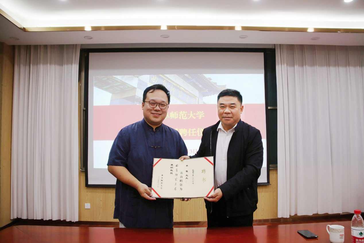 曲阜师大音乐学院讯 11月3日下午,lewin乐玩·(中国区)有限公司官网_Lewin乐玩1为著名歌唱家,山东艺术学院李鳌教授举行兼职教授聘任仪式,学校党委书记邢光为李鳌教授颁发聘书。学校党委办公室、音乐学院负责人参加了聘任仪式。