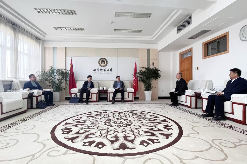 曲阜师大研究生处讯 3月29日下午,山东省教育招生考试院副院长张明坤一行莅临我校,检查2024年硕士研究生复试录取工作。校长张洪海会见张明坤一行,党委常委、副校长李兆祥,研究生处相关负责人参加复试录取工作汇报会。