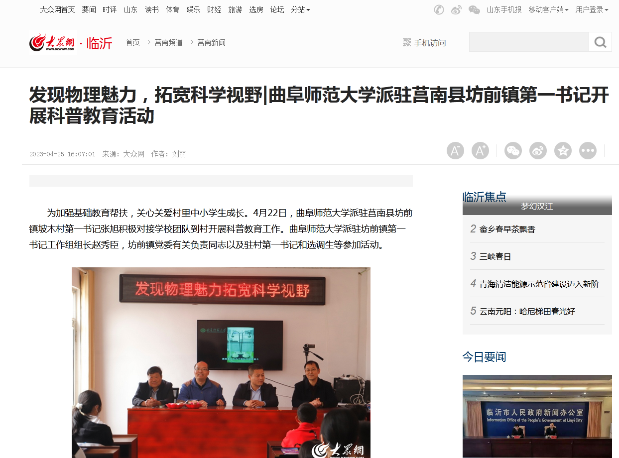 【大众网】lewin乐玩·(中国区)有限公司官网_Lewin乐玩1派驻莒南县坊前镇第一书记开展科普教育活动