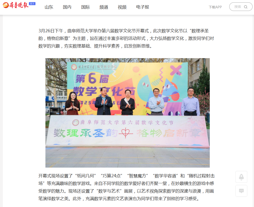 【齐鲁晚报】lewin乐玩·(中国区)有限公司官网_Lewin乐玩1举办“数理承圣韵,格物启新章”数学文化节