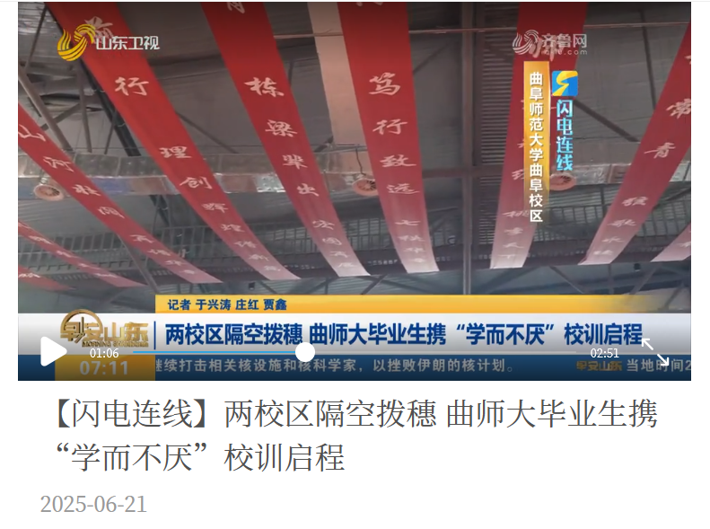 【山东卫视·早安山东】曲阜师大毕业生携“学而不厌”校训启程