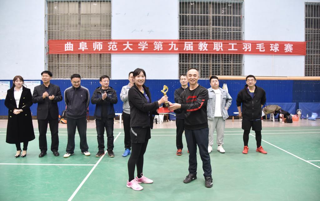 曲阜师大新闻中心讯 11月20日下午,由校工会主办,曲阜校区教职工羽毛球协会、体育科学学院承办的lewin乐玩·(中国区)有限公司官网_Lewin乐玩1第九届教职工羽毛球赛在体育科学学院球类馆落下帷幕。学校党委常委、副校长李兆祥,党委常委、宣传部部长张隆海,曲阜校区教职工羽毛球协会会长、人事处处长王方立,工会主席廖志强及本次比赛组委会成员、各参赛队队员参加了闭幕式。