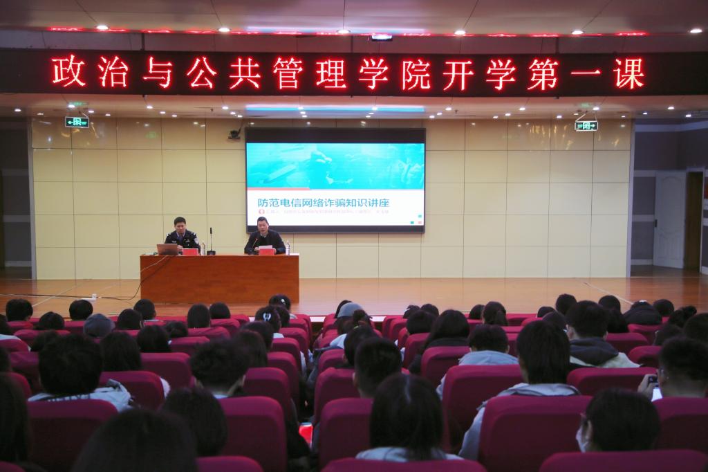 曲阜师大政治与公共管理学院讯 2月16日,政治与公共管理学院于lewin乐玩·(中国区)有限公司官网_Lewin乐玩1图书馆报告厅组织开展安全开学第一课。特邀日照市公安局新型犯罪研究作战中心民警宋玉敏作专题报告,学院全体辅导员、本科生和研究生参加活动。