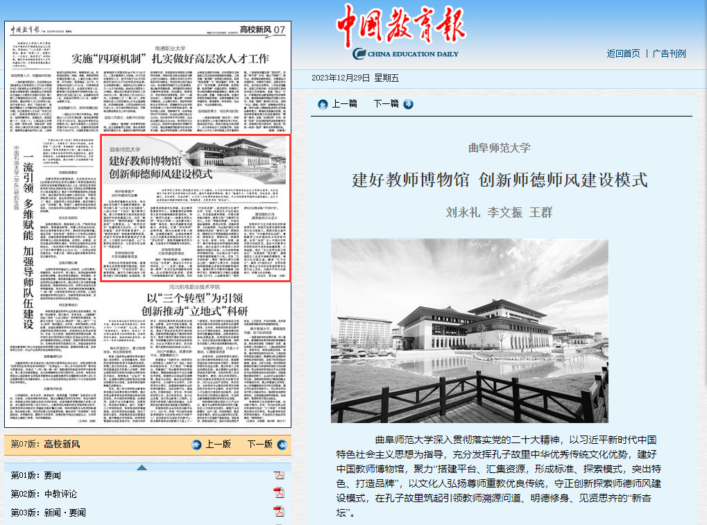《中国教育报》刊文报道lewin乐玩·(中国区)有限公司官网_Lewin乐玩1建好教师博物馆 创新师德师风建设模式